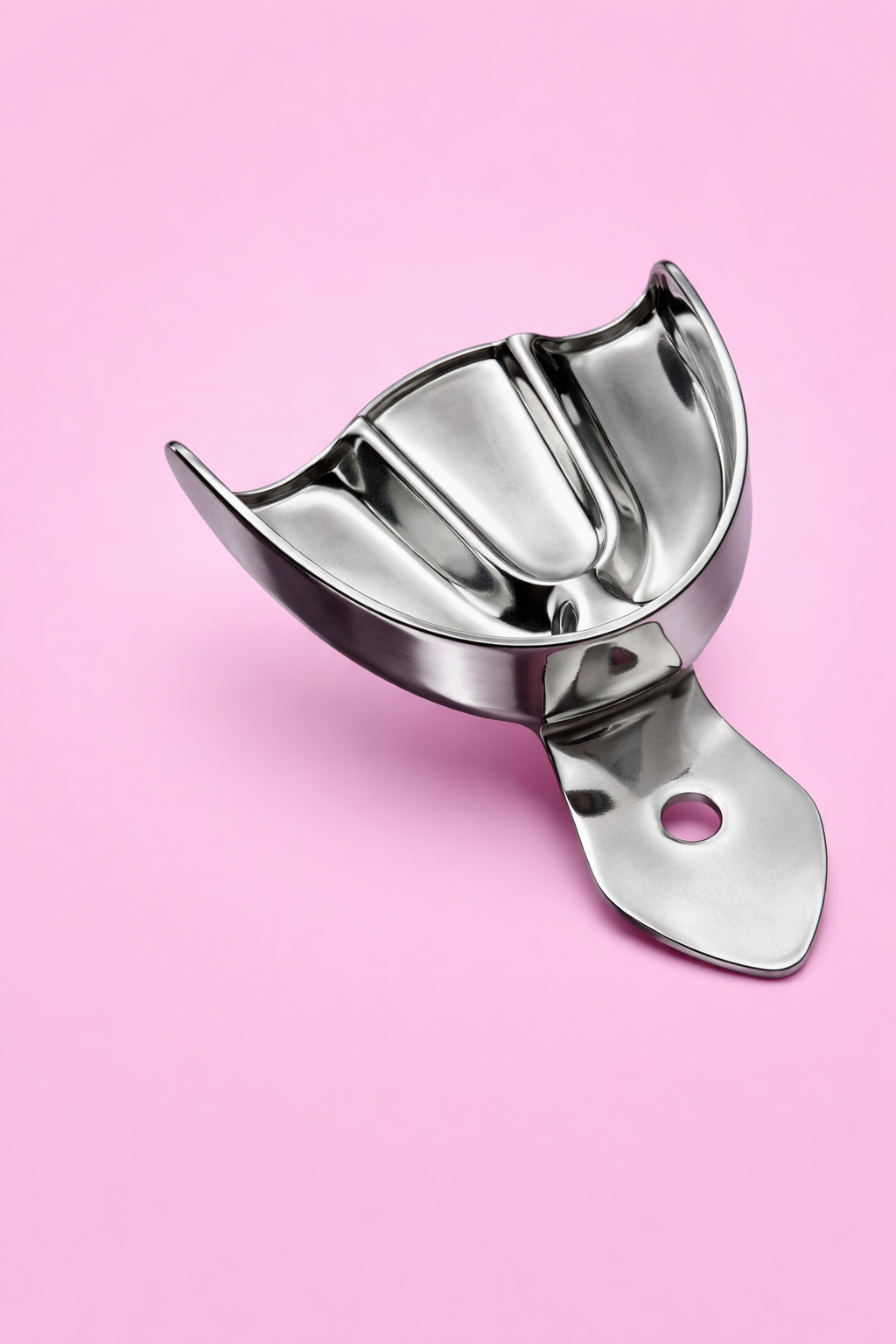 Cubeta fabricada en acero inoxidable, diseñada para la toma de impresiones dentales con materiales elastoméricos o similares. No desechable y apta para esterilización, ofrece resistencia, estabilidad y durabilidad para uso clínico profesional.